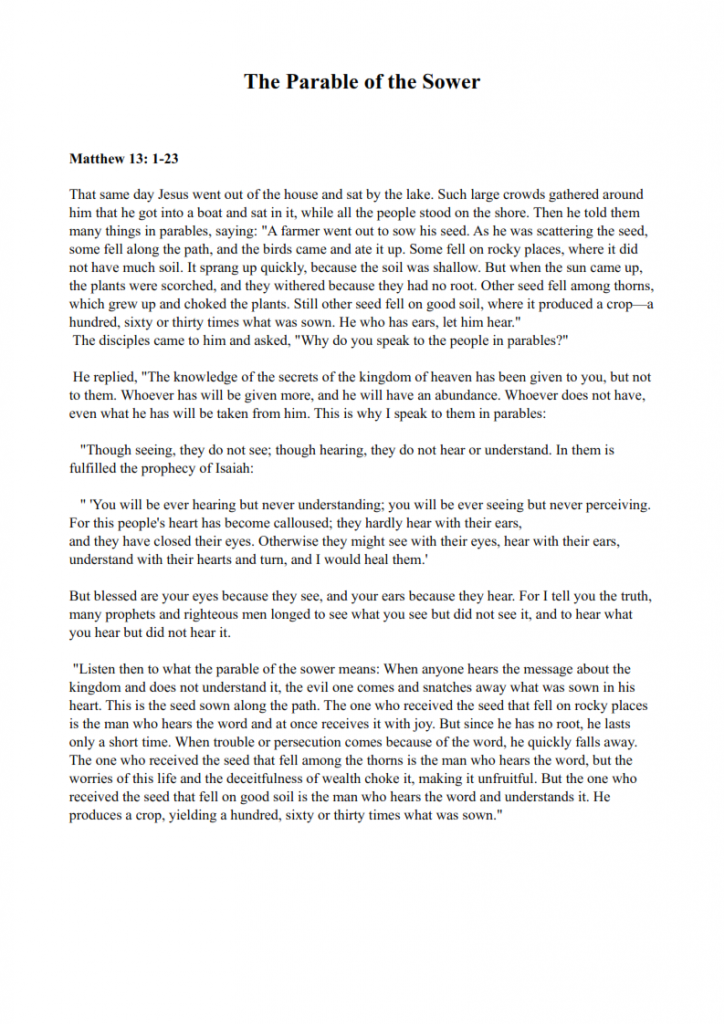 * The Parable of the Sower – Matthew 13:1-23