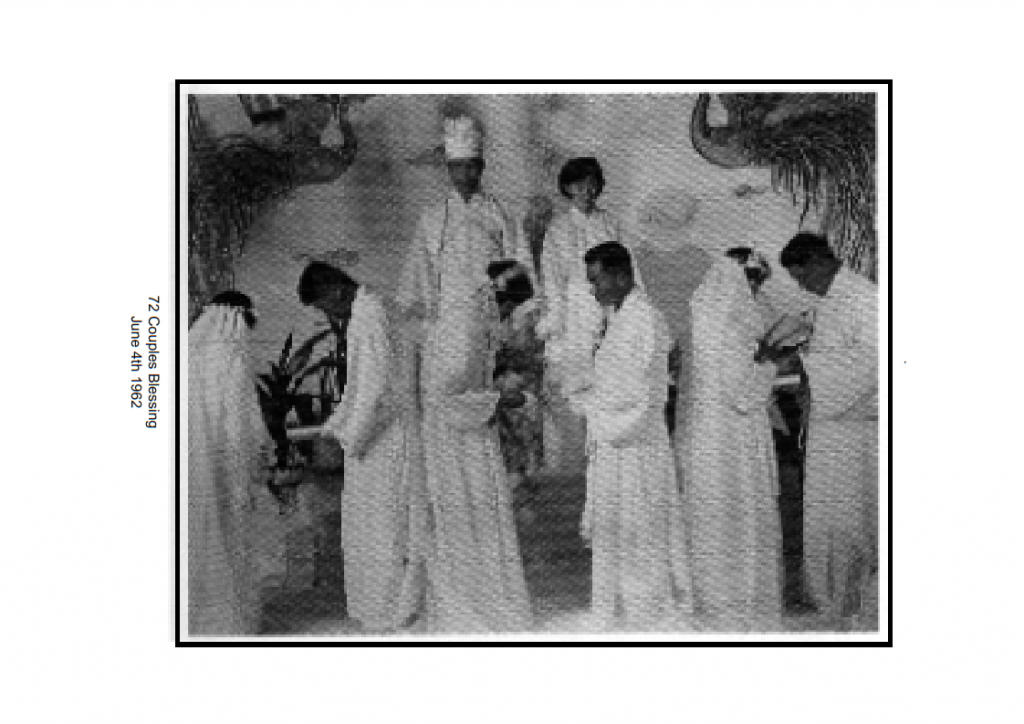 * In 1962 Father announced another blessing. He matched 72 couples. He told the candidates, ”You should be willing to be blessed with anyone I choose for you. Don’t worry about how goodlooking your husband or wife might be.”