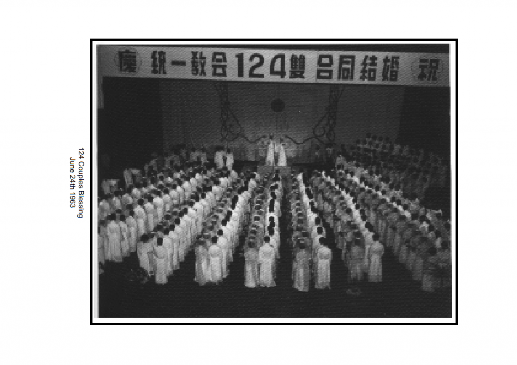 * On June 24th 1963, 124 couples were blessed in the civic auditorium in Seoul, in front of 3,500 people. After the blessing the couples went on a tour of Seoul in 150 cars, with a police escort