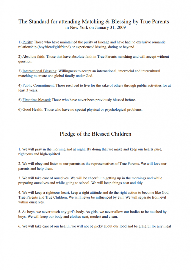To restore Adam and Eve’s mistake and be qualified to receive the Blessing, you must stay pure.