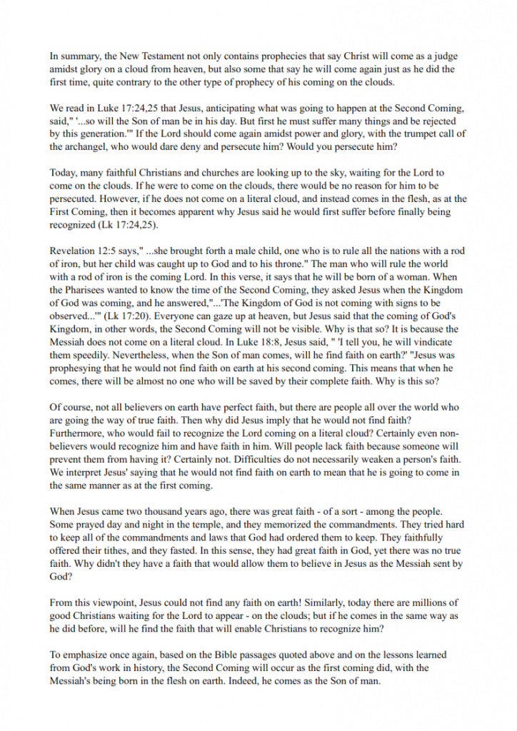 * Christians have been waiting for 2,000 years for Christ to return. The second advent has already taken place through True Father, but most Christians don’t realize it. Why is that? It is because they don’t have the correct understanding. By studying the Principle we can clearly understand how Christ will return.